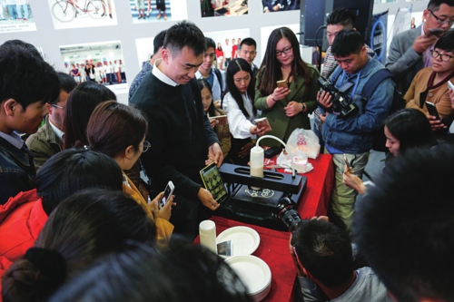 在现场,百度公司展出的智能机器人“小度”收获了不少“粉丝”。汉能控股集团展出带有太阳能电池的概念车Hanergy SolarPower则成为了观众合影的“标配”。而一些与普通用户生活更为贴近的创业项目,让观众最为动心。