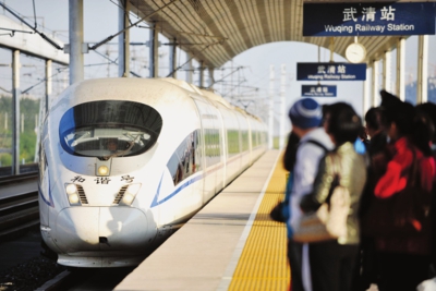 看交通,乘坐京津城际列车,从北京和天津市区到武清区仅需23分钟和13分钟。作为京津之间惟一的经停站,目前武清站每天经停城际客车23对、高峰客运量超过1万人。自驾前往武清区也十分方便,去年,京津塘高速下朱庄口、京津高速高村口2个高速出入口开通,该区已有过境高速6条、出入口14个,同时,随着一批区域断头路、瓶颈路打通工程的启动实施,武清“九横九纵”路网正向京津冀三地加速延伸。