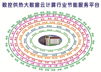 以自主研发的数据分析计算系统、参数生成系统等支撑起的数控供热大数据云计算行业节能服务平台,是通过采用计算机专业编程方法,将16项节能技术全部开发成节能控制软件并装入云计算平台,对设备实施远程控制供热。根据节能方法,诊断热企能耗,对热源厂、换热站、用热楼、用热户房间,提供一套数据各异供热参数,合理精准指挥、量化供热。