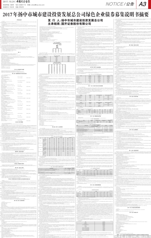 2017年扬中市城市建设投资发展总公司绿色企业债券募集说明书摘要