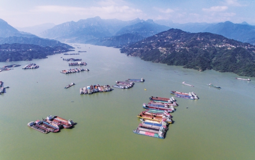 日前,三峡水库水位达到175米,蓄水量393亿立方米,三峡工程新一轮175米试验性蓄水目标顺利实现,这为全面发挥工程防洪、发电、航运、生态等综合效益奠定了坚实基础。图为船舶有序停靠在三峡大坝上游湖北省秭归县仙人桥锚地。新华社