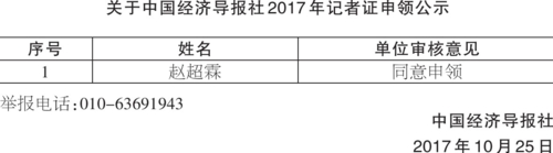关于中国经济导报社2017年记者证申领公示