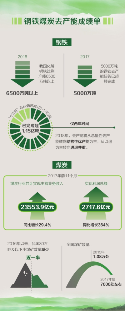 2017年,去产能的亮眼成绩得之不易,在推进钢铁、煤炭去产能的过程中,顶层设计合理是关键之所在。