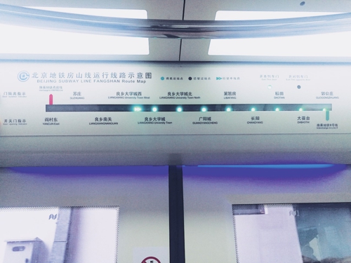 当然,不仅在线上运行时是无人驾驶,而且放在停车场内也是完全自动清洗、检测、上电、唤醒、出库,被称为北京最智能的地铁。该条线从信号、车辆、通信到综合监控系统完全是国产。跟北京其它地铁线相比,这条线车厢里的电子地图是LED显示,照明系统随着车外环境变化自动调节亮度,空调温度也可在控制中心远程调节。
