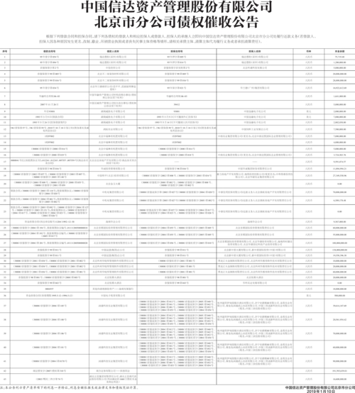 中国信达资产管理股份有限公司北京市分公司债权催收公告