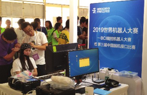 据了解,2019世界机器人大赛设立“BCI脑控机器人大赛暨第三届中国脑机接口比赛”的目的,是以赛事为平台,推进脑机接口技术的创新突破。所谓脑机接口BCI,是指通过对神经系统电活动和特征信号的收集、识别及转化,使人脑发出的指令能够直接传递给指定的机器终端,从而使人对机器人的控制和操作更为高效便捷。这一技术可广泛应用于助残康复、灾害救援、娱乐体验等多个领域。在大赛现场,西安交通大学机械工程学院医工交叉研究所的参赛人员专门演示了人超视距脑控无人机飞行。