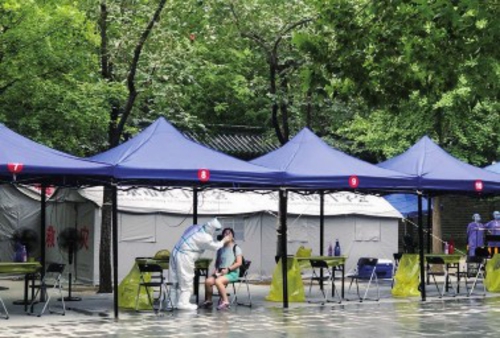 7月2日上午,单位组织我们三四十个此前未参加社区核酸检测的员工到月坛公园进行核酸检测。天上飘着小雨,十分凉爽,公园北门有人维持秩序,这里作为检测场所暂时不接待游客。