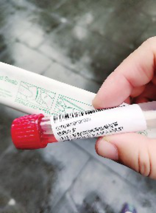 我们先凭身份证领取咽拭子棉签和试管,然后在离检测点几米远的地方等待检测。北京大学人民医院的医务人员一身防护服“全副武装”,每检测完一个人,就拿消毒液喷剂在座位附近喷洒一番,看着挺让人安心的。检测时我们需要坐在椅子上,张开嘴巴,棉签伸到喉咙深处打转,有点不舒服但还好时间不长。短短几天后,手机健康宝上显示记者的核酸检测结果为阴性。老北京人为此编排了家常对话的段子:“今儿核酸了吗您呐?”“您瞧好儿吧,阴着呢!”