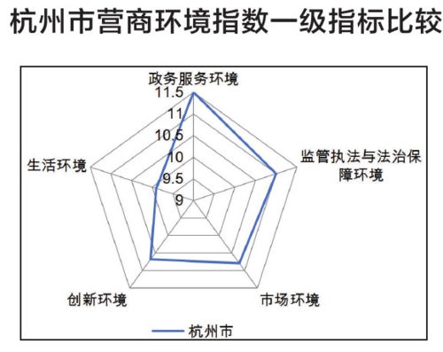 今年的营商环境指数排名显示,杭州在全国100城市营商环境指数总分中跻身前五,为90.53,主要得力于市场环境和创新环境指数的表现——两项指数均排名前五。