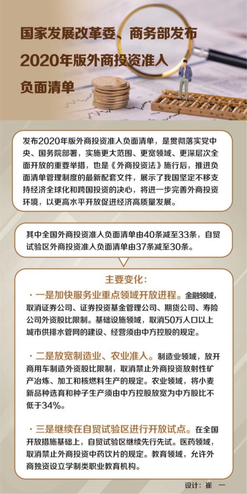 国家发展改革委、商务部发布2020年版外商投资准入负面清单