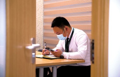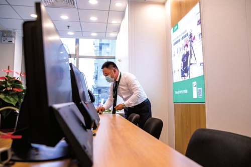 早晨8:30,李勇开始了一天的工作,第一件事就是打扫卫生,疫情防控期间,又增添了一道消毒的程序。接下来就是每天的“晨会”,在颇具仪式感的唱公司司歌之后,李勇开始公布每个经纪人近期的签单量、租赁带看量等数据,并提醒每位经纪人当月乃至当天应该达到的具体目标,一串串冰冷的数字压得大家似乎喘不过气来。