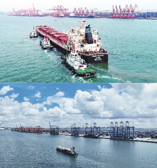下图为2023年11月24日拍摄的钦州港,集装箱自动化码头已投入运营。 新华社