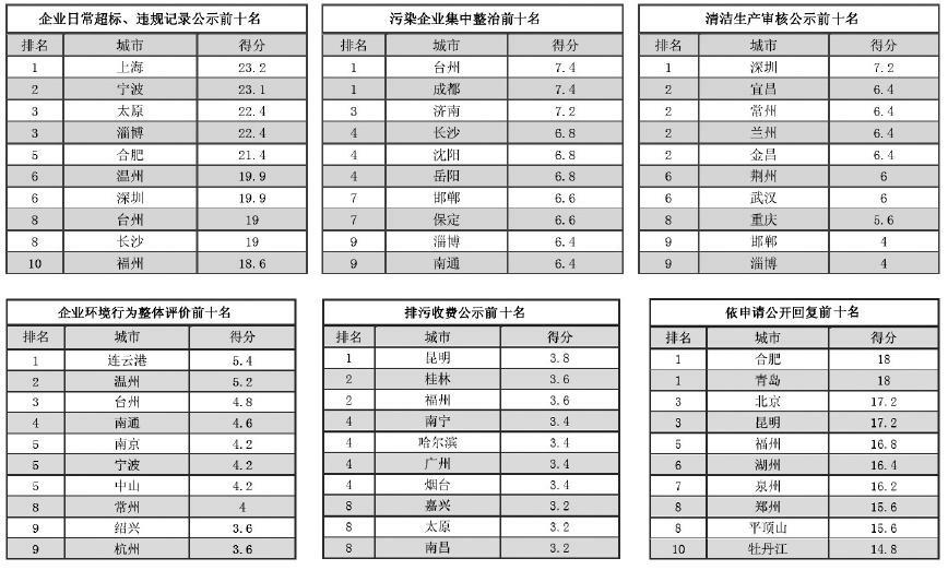 这113个城市涵盖了哈尔滨、济南、石家庄、长沙、广州、成都、乌鲁木齐等110座国家环保重点城市,2广泛分布于中国的东、中、西部地区。通过对当地政府所作的超标违规记录公示、信访投诉案件处理结果公示、依申请公开等8个指标的系统性、及时性、完整性和用户友好性进行定量和定性分析,给出了细项得分和排名.