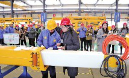 记者在车间参观采访。张九坤/摄