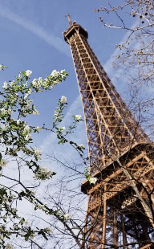 近日,法国巴黎埃菲尔铁塔下春花绽放。新华社