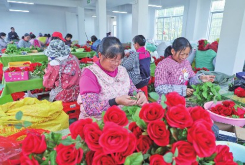 广西浦北东圣塑胶制品有限公司入驻的是一家搬迁后空置很多年的旧厂区。在插花车间,一群年龄在60岁左右的中老年人,一边大声说笑,一边组装着塑料插花。该公司副总经理冯志海拿着外发加工统计名单介绍说:“我们主要生产丝花塑胶制品、藤条品以及五金产品,除了模具部分,有一半的工序只能依靠手工组装。对一些因手脚不便和需要照顾家人而无法到厂工作的群众,我们会将塑料花外发让他们带回家加工。目前有17个村(社区)约800个家庭有外发加工的单子,每个家庭每个月能增加收入1000多元。”